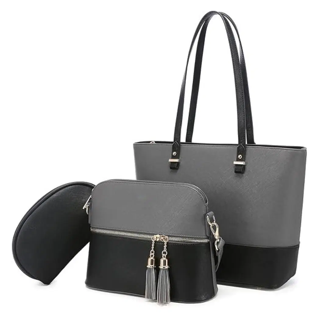 3-Piece Women’s PU Leather Handbag Set | Black & Grey | Shoulder, Crossbody & Pouch | Zaphior