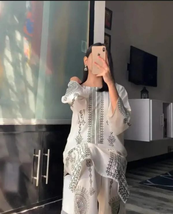 Have this beautiful 2 Pcs Women’s Stitched Sapphire Print Linen Dress, perfect for casual wear. Made with premium quality linen fabric featuring a stylish sapphire print shirt and trouser set. Comfortable, breathable, and ideal for daily summer fashion. Order online now!