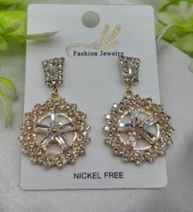 Imported Radiant Baguette Floral Drop Earrings – Nickel Free Earrings – Luxurious Gold Finish | Best Quality Artificial Earrings For Girls & Women