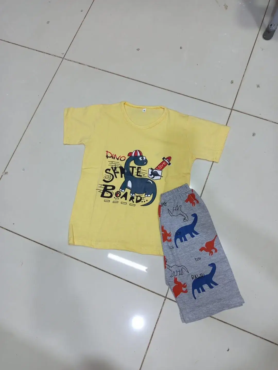 Dress your little one in this delightful 2-piece boy’s shirt and shorts set made from soft cotton jersey. Designed with a fun printed pattern, this vibrant yellow outfit is perfect for ages 1-5 years. Ideal for playdates or casual outings, it’s a comfortable and stylish choice for your child’s wardrobe.